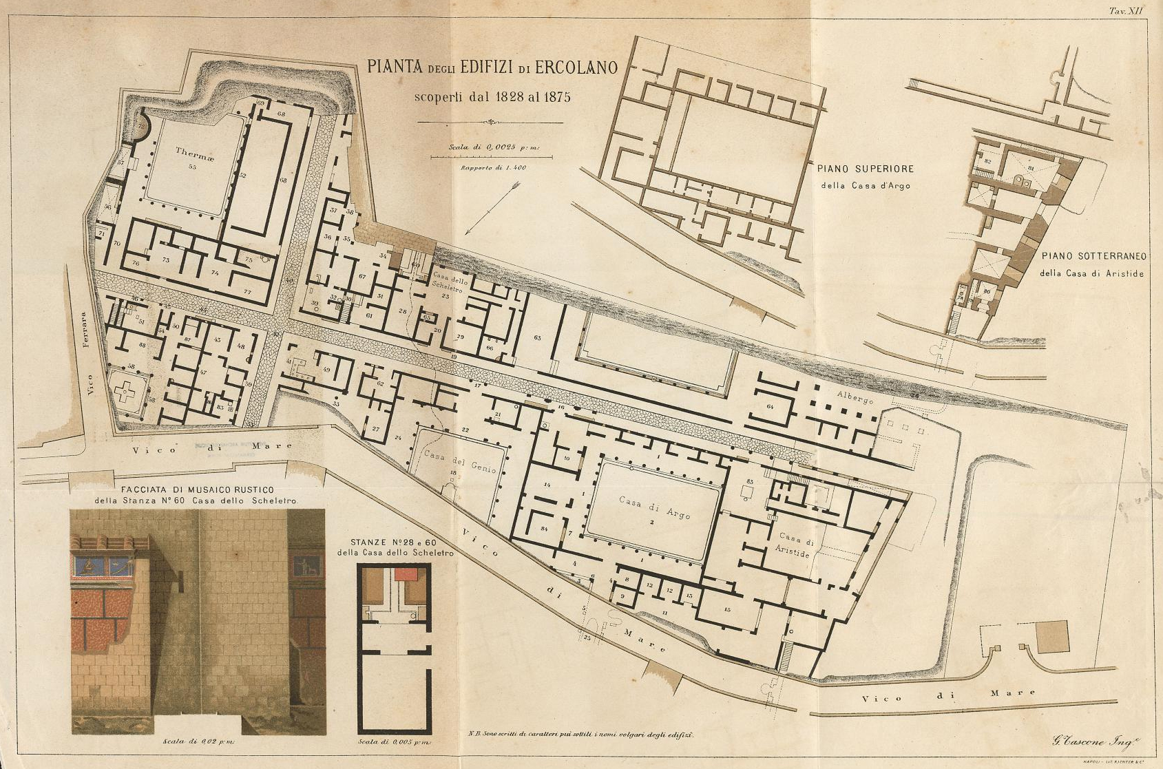 Plan of Herculaneum area by P. and F. La Vega, published in 1797 by C. M. Rosini in Dissertationis Isagogicae ad Hercvlanensivm Volvminvm Explanationem: Pars Prima.