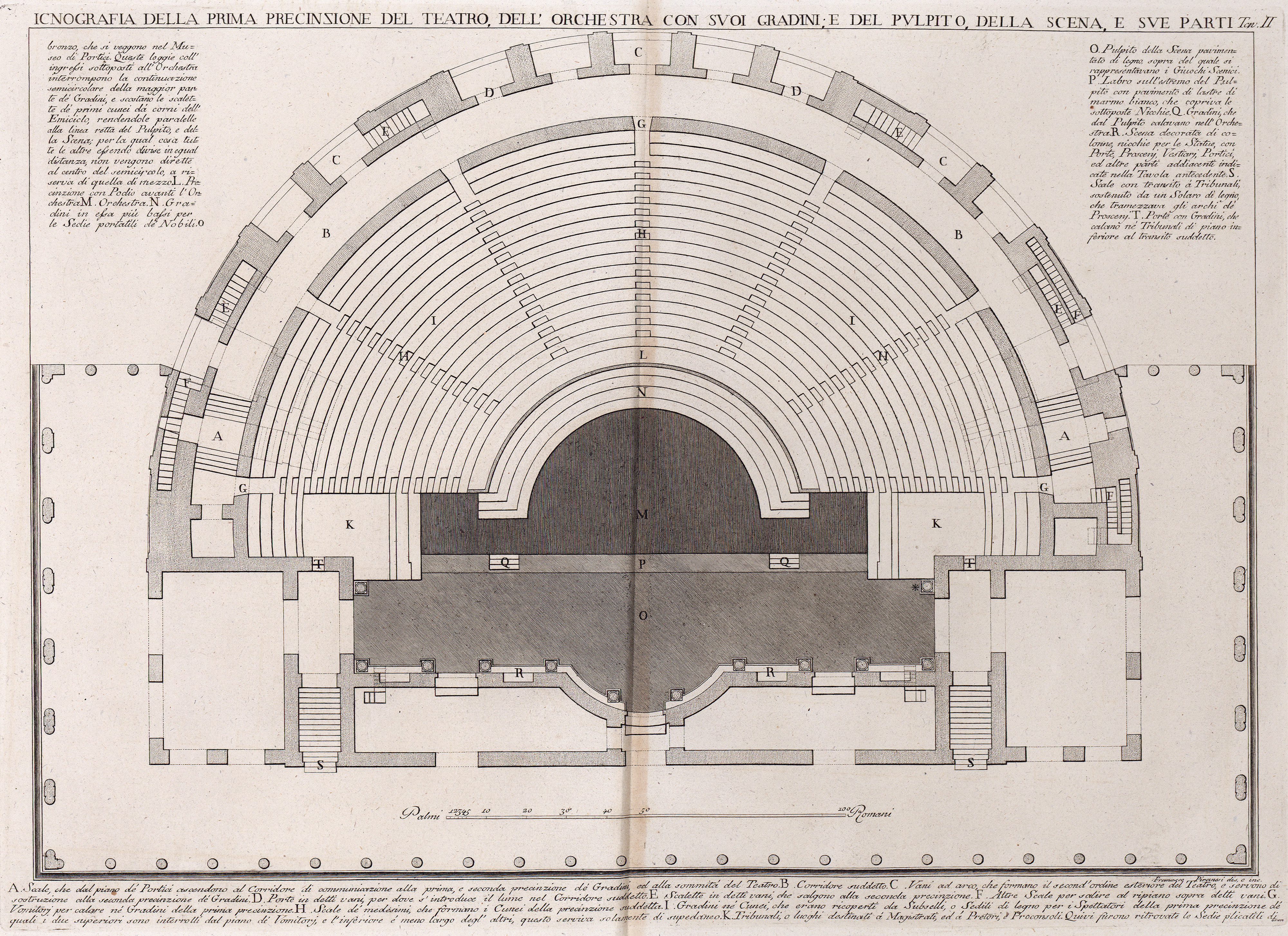Iconografia della prima precinzione del teatro, dell' orchestra con suoi gradini; e del pulpito, della scena, e sue parti